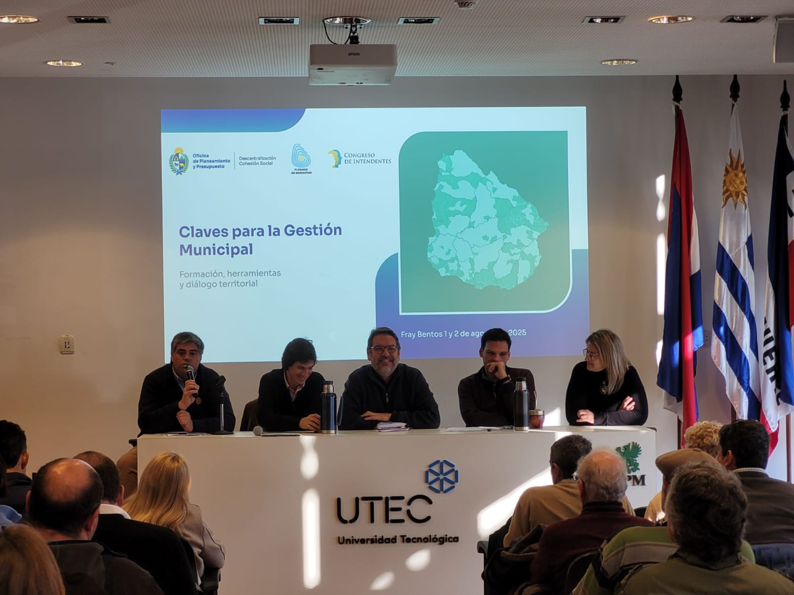 Los días 1 y 2 de agosto inició el Ciclo “Claves para la Gestión Municipal: Formación, herramientas y diálogo territorial", co – organizado entre Cohesión Social de OPP y el Plenario de Municipios de Uruguay. Estas primeras jornadas tuvieron lugar en las instalaciones de UTEC de Fray Bentos. Participaron los municipios de Colonia, Río Negro y Soriano. De la apertura de la actividad participaron el intendente de Río Nergo, Guillermo Levratto, la alcaldesa de Fray Bentos, Cecilia Rodríguez,el alcalde de Nuevo Berlín, Hernán Godoy, el coordinador de Descentralización de OPP, José Manuel Arenas y el coordinador de Cohesión Social de OPP.